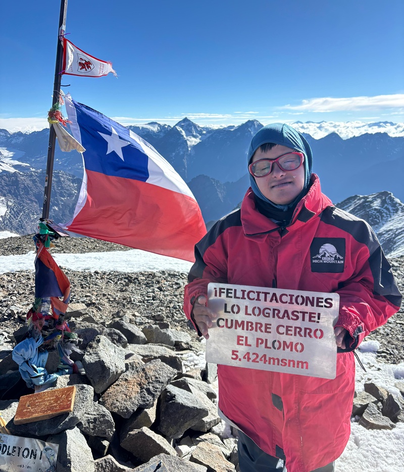 Martín Plaza de Los Reyes Au, se convirtió en la primera persona con Síndrome de Down en alcanzar la mayor altitud registrada al hacer cumbre en el Cerro El Plomo.