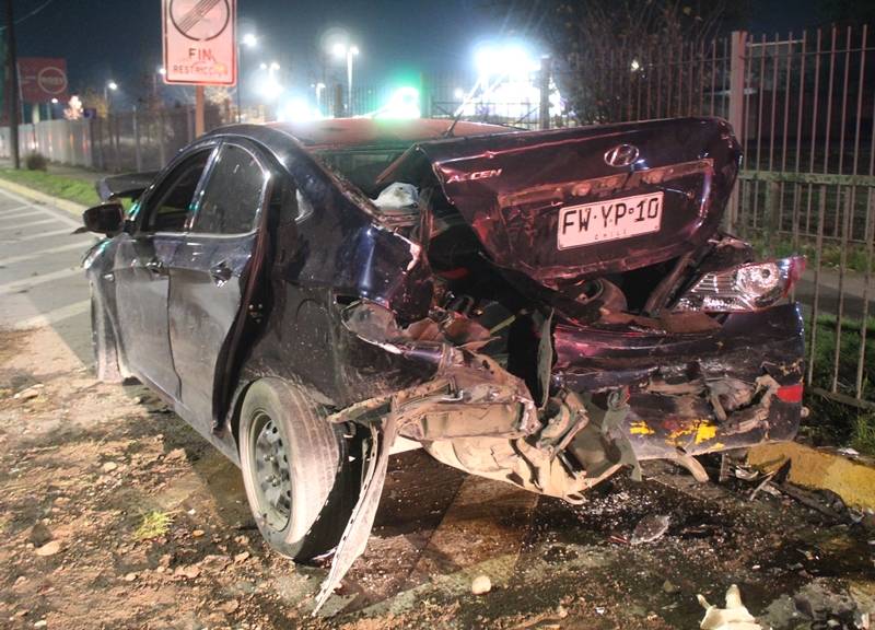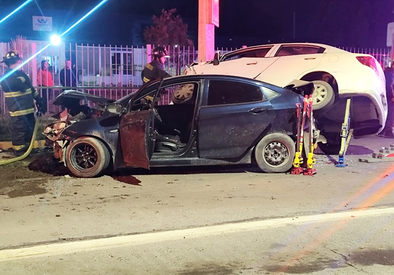 A raíz de lo anterior ambos móviles terminaron sobre la berma, quedando el Sail montado sobre el Hyundai.