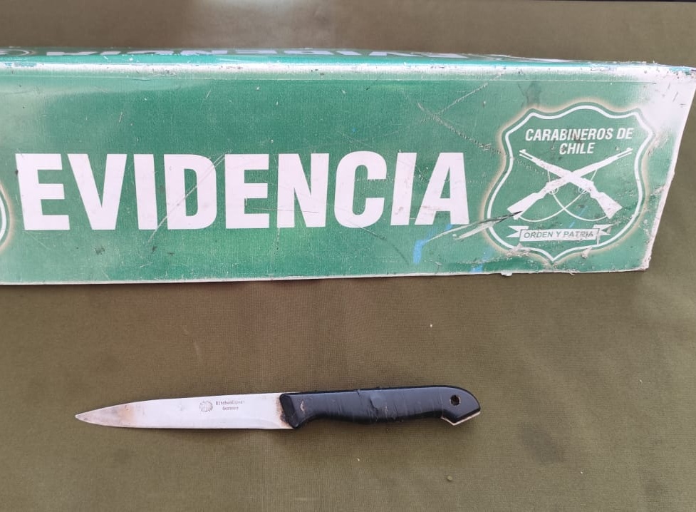 No obstante ello, los funcionarios lograron reducirlo por la fuerza y al revisar entre sus vestimentas encontraron un cuchillo cocinero, siendo finalmente arrestado y conducido al cuartel policial.
