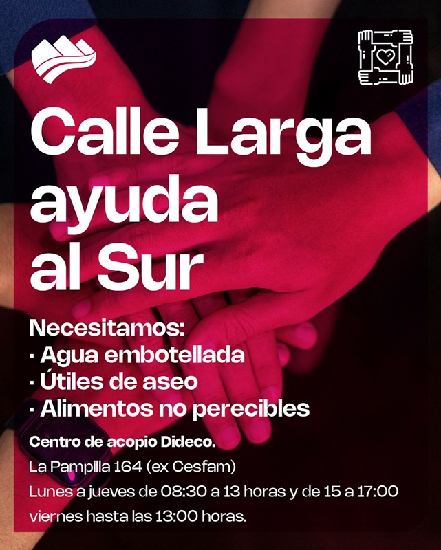 La Municipalidad de Calle Larga está invitando a los vecinos a sumarse a la campaña solidaria “Calle Larga ayuda al sur”, para apoyar a las familias afectadas por los incendios forestales.
