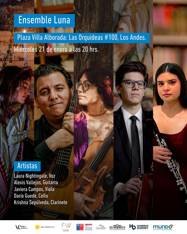 Las actividades comienzan el miércoles 21 de enero con el segundo concierto del Portillo Fest, que tendrá como protagonistas al Ensamble Luna, un quinteto de músicos internacionales. La presentación se realizará a las 20:00 horas en la plaza de la Villa Alborada, ubicada en calle La Orquídea N°100, invitando a disfrutar de una tarde-noche de música de alto nivel.