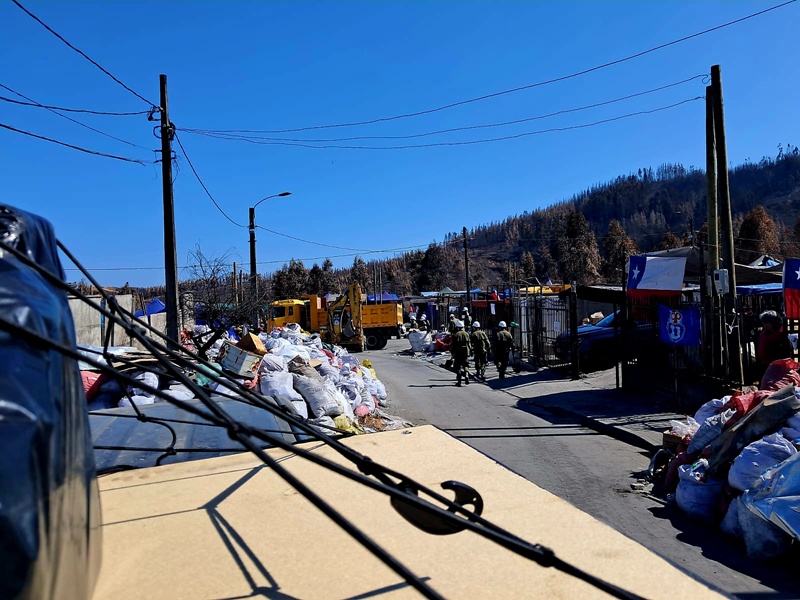 La comitiva tenía muy claro el destino de la ayuda. Las noticias indicaban que el 80% de Lirquén estaba bajo llamas. Se habla de una brutal destrucción en la interface urbana-forestal, especialmente en las poblaciones Ríos de Chile, Villa Italia, Geo Chile y sectores altos, debido al avance de los focos Trinitarias y Rancho Chico, bajando desde los cerros hasta las viviendas. Las noticias se toman la agenda, normalmente criticando la respuesta de los municipios y gobierno de turno. Sin embargo, pocos hablan de la condición forestal de la zona, amplificada de manera constante con especies exóticas, monocultivos ricos en resinas, atrayentes de los incendios, causa basal de estas emergencias.