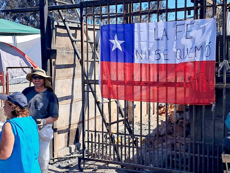 En este suceso poco importan las razones ecológicas, empresariales y decisiones de las inversiones productivas, lo importante es ver las necesidades inmediatas, cosa que iba quedando plasmado en los emocionantes audios que continuamente recibíamos de esa caravana, compuesta por el camión de Dennis y las tres camionetas 4x4 del Club Solidario Pro-Modificaciones Muñoz, los que contaban con la experiencia de otros viajes a Dichato, Santa Olga y Valparaíso. La llegada al poblado Geo Chile, daba cuenta de un verdadero bombardeo, con cerros humeantes, muros destruidos, cerámicas partidas, cableados quemados. Sólo mudos testigos eran los postes de cemento y caminos interiores.