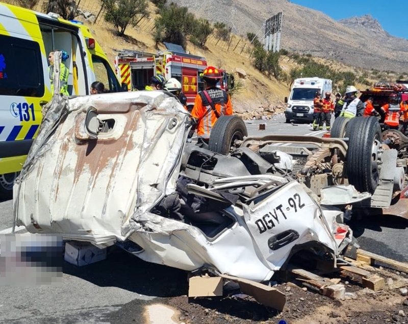 RINCONADA (18/02/2026).- Dos heridos graves fue el saldo del volcamiento de un camión registrado la tarde de este miércoles en la autopista Los Libertadores.