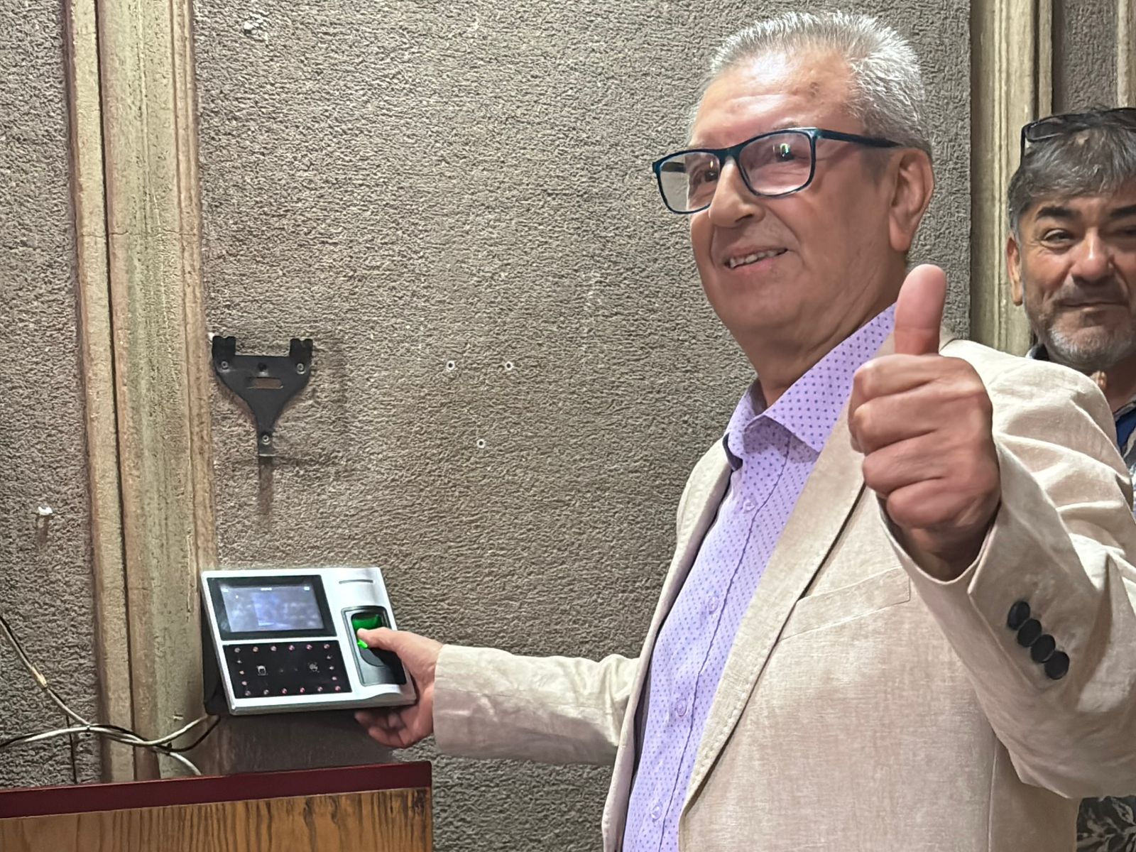 Posteriormente, se dirigieron al Hall central del municipio donde eran esperados por sus colegas para la despedida donde se vivieron momentos de emoción, hicieron uso de la palabra ambos funcionarios y entre aplausos y abrazos, se dio paso a la marcación final del reloj control de asistencia.