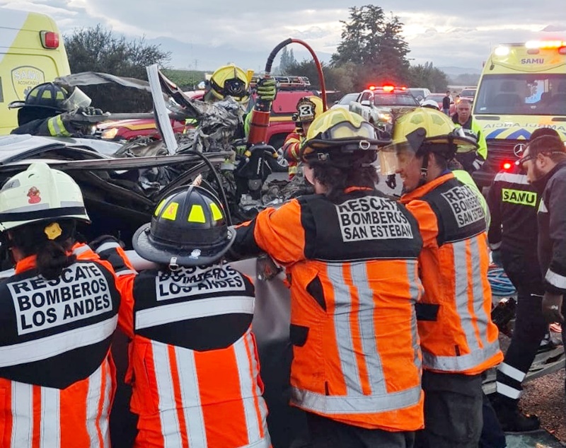 Alertados del accidente, hasta dicho punto de la autopista se movilizaron ambulancias del Samu Aconcagua, unidades y voluntarios de los Cuerpos de Bomberos de Los Andes-Calle Larga y San Esteban, funcionarios de la concesionaria y patrullas de Carabineros.