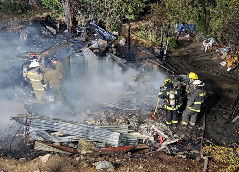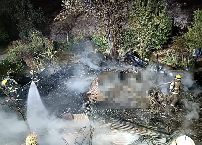 SAN ESTEBAN (15/04/2026).- Un adulto mayor murió calcinado al interior de su modesta casa ubicada en la ladera de un cerro en el sector El Carrizo de esta comuna, a consecuencia de un voraz incendio que la madrugada de este miércoles consumió en su totalidad el inmueble donde vivía solo.